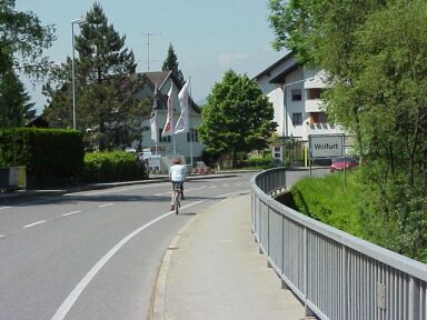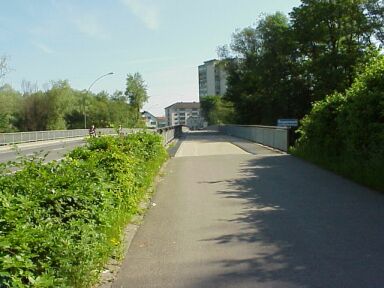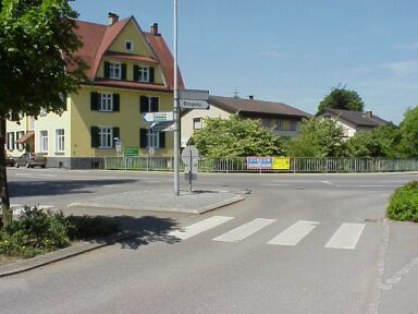 ![]() km 12,8: Wir fahren immer dem Bach entlang, durch Kennelbach durch und biegen dann links auf die Hofsteigstraße, Richtung Bregenzer-Ach-Brücke ab. |